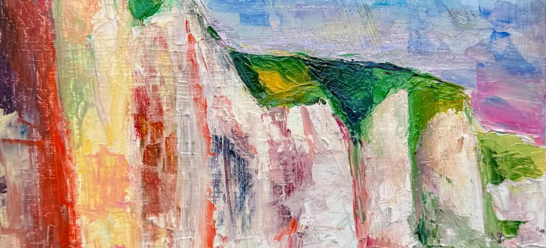 Ces œuvres rendent hommage à la côte de Pourville-sur-Mer, ses lumières changeantes, ses horizons mouvants et la végétation des bords de mer. À travers elles, je cherche à capter l’équilibre subtil entre terre et mer, solidité et fluidité, ancrage et évasion.