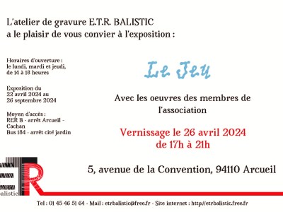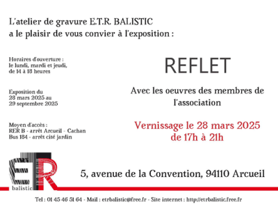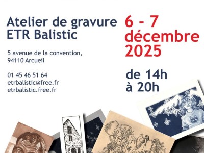 A la Une Les derniers articles Exposition ETR Balistic : Gravures en lumière à Cachan 22 novembre 2025 Vente de Noël & Tombola – Atelier ETR Balistic, Arcueil 29 novembre 2025 ✨ Mon exposition est maintenant à l’Étang d’Art, à Bages 26 novembre 2025 Exposition collective : venez découvrir mes toiles aux Gobelins ! 31 octobre 2025 Exposition « Tous à vos pinceaux » à Saint-Pierre-le-Viger 4 juillet 2025 Mini Prints in Cadaquès 2025 28 juin 2025 Rendez-vous aux Journées de l’Estampe Contemporaine – Stand 210 avec ETR Balistic ! 2 juin 2025 Les Fabriques de l’Empreinte : Événement Collectif de Gravure 28 avril 2025 Exposition collective « Reflet » 13 avril 2025 Exposition d’estampes à la galerie Artes 15 janvier 2025 Expo Collective des Artistes du Cercle des Gobelins 10 octobre 2024 Exposition collective « Le Jeu » 16 Mai 2024 Page Suivante Souscrire Saisissez votre adresse e-mail ci-après pour recevoir des mises à jour. Saisissez votre adresse e-mail… Abonnez-vous Partager : Cliquez pour partager sur WhatsApp(ouvre dans une nouvelle fenêtre) WhatsApp Cliquer pour envoyer un lien par e-mail à un ami(ouvre dans une nouvelle fenêtre) E-mail Cliquez pour partager sur Facebook(ouvre dans une nouvelle fenêtre) Facebook Plus Cliquez pour partager sur Pinterest(ouvre dans une nouvelle fenêtre) Pinterest J’aime chargement…