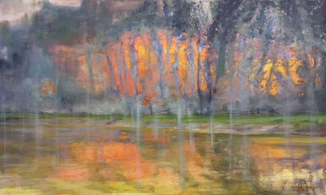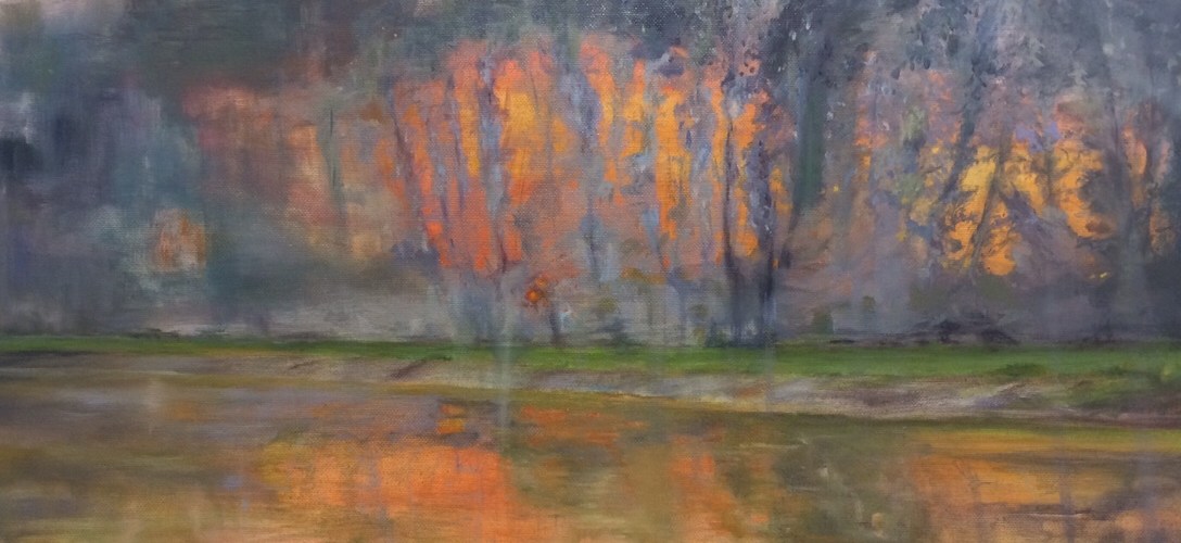 Retour sur mes variations autour du coucher de soleil sur les étangs de Varenne, cette fois à l’huile